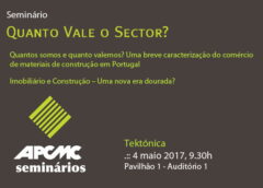 Programa 09h30 Receção 10h00 Abertura dos trabalhos Carlos Rosa, Presidente da Direção da APCMC 10h15 Quantos somos e quanto valemos? Uma breve caracterização do comércio de materiais de construção em Portugal José de Matos, Secretário-Geral da APCMC [Apresentação] 10h45 Debate 11h00 Coffee Break 11h15 Imobiliário e Construção – Uma nova era dourada? Moderador: …
