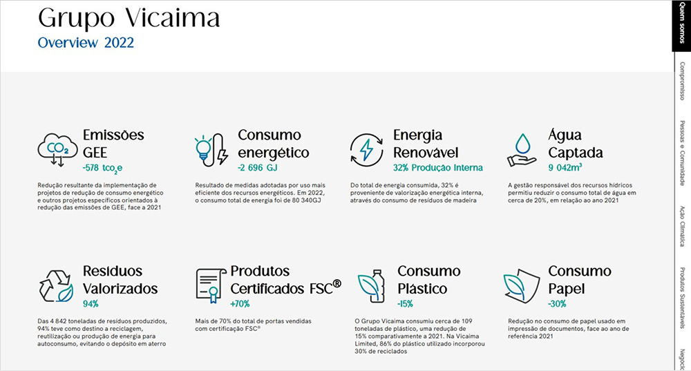 O Relatório de Sustentabilidade 2022 do Grupo Vicaima está disponível para consulta na íntegra em https://www.vicaima.com/pt/sustentabilidade.