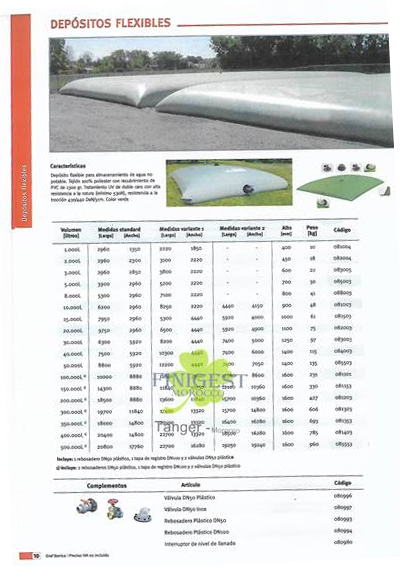 A) DEPOSITOS EM PVC. Fléxiveis para água.